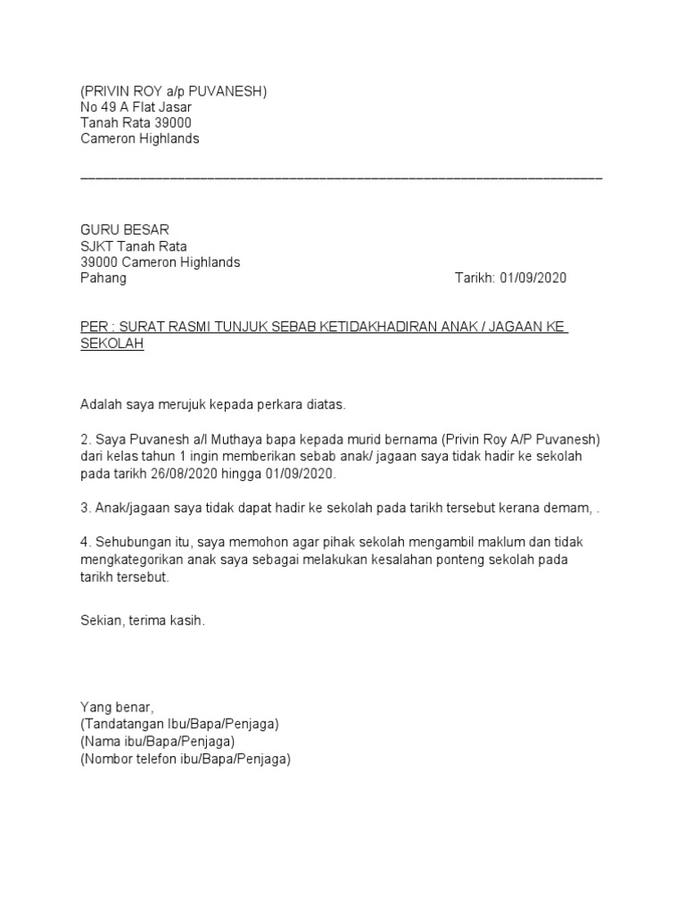 Contoh Surat Rasmi Pemberitahuan Tidak Hadir Bekerja